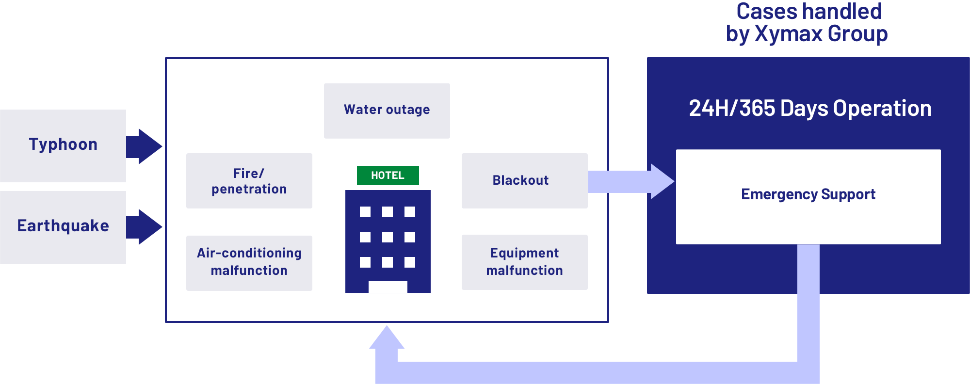 An all out support from XYMAX Group for karaksa hotel’s safety, effective operations, and stable supplies.
